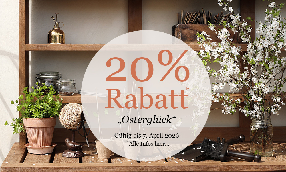 *Der Gutschein-Code ist nicht mit anderen Aktionen & Rabatten (Setpreise, Aktionen & 5+1 Aktionen, SALE-Preise, Outletartikel, Skonti & Vorkassenrabatte, etc.) kombinierbar. Es gilt der jeweils bestmögliche Rabatt. Nicht gültig für Geschenkgutscheine. Die Marken Form & Refine, String Furniture, HOUE und Warm Nordic sind von der Aktion ausgeschlossen. Außerdem sind einzelne Artikel von der Rabattaktion ausgeschlossen. Dies ist in der Artikelbeschreibung gekennzeichnet. Für weitere Informationen klicken Sie bitte hier...