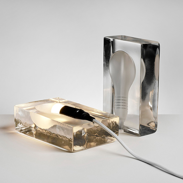 Die Idee für die Block Lamp entstand während eines Workshops an der University of Art and Design Helsinki. Die Schüler bekamen die Aufgabe, ein Geschenk für eine Hochzeit zu entwerfen. Harri Koskinen hatte die Idee eine einfach Form, wie eine Glühbirne in Glas zugießen.