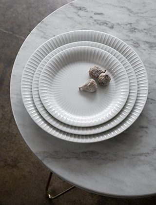 Freuen Sie sich täglich über einen schön gedeckten Tisch mit Hammershøi und lassen Sie das Geschirr als elegantes i-Tüpfelchen auf einer festlich gedeckten Tafel zur Geltung kommen. Das Hammershøi-Geschirr mit seinen dekorativen Rillen und der leicht transparent wirkenden Glasur verleiht der Keramik einen klassischen Ausdruck. Die Rillen haben zudem nicht nur eine dekorative Funktion sondern sorgen dafür, dass die Tasse angenehm in der Hand liegt und die Aufbewahrungsgläser leicht geöffnet werden können. Das Geschirr hebt sich ein wenig vom Tisch ab und wirkt somit leicht schwebend. Durch die Form und die Farben der Natur, Weiß, Koralle, Anthrazit, Himmelblau, Marmorgrau und Indigoblau erscheinen die einzelnen Teile als kleine, selbständige Designwunder.