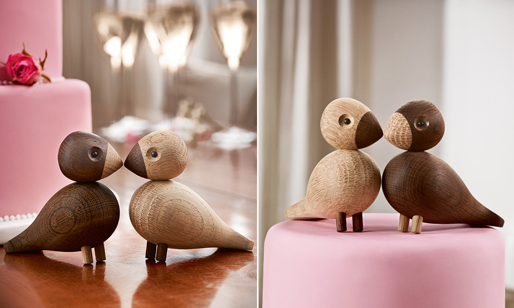 Kay Bojesen Lovebirds aus Eichenholz – Unzertrennliche als Hochzeitsgeschenk