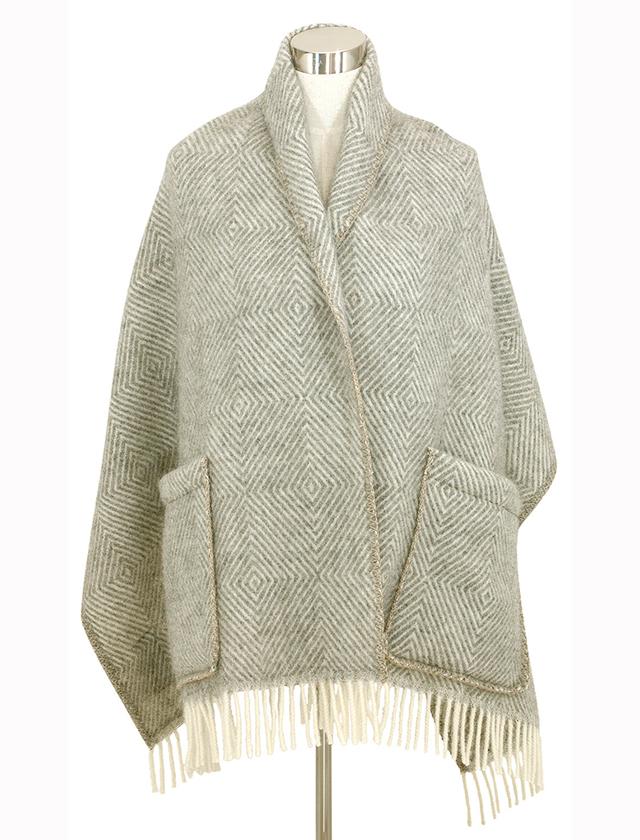 Pflegehinweis: Waschen Sie die Maria-Pocket Shawl nur bei starker Verschmutzung. Bei leichten Gerüchen hängen Sie den Shawl für eine Weile draußen bei frischer Luft auf. Handwäsche bei maximal 30 °C oder in die trockene Reinigung geben. Wollwaschmittel benutzen. Waschpulver in reichlich Wasser auflösen oder flüssiges Waschmittel verwenden. Den Schawl in das Wasser tauchen und sofort waschen. Vorsichtig ausdrücken. Nicht auswringen. Zwischen Handtüchern pressen, bis der Shawl halb getrocknet ist und anschließend in luftiger Umgebung trocknen. Nicht im Trockner trocknen. Bei max. 150 °C bügeln. Dabei empfehlen wir ein feuchtes Tuch zu verwenden.