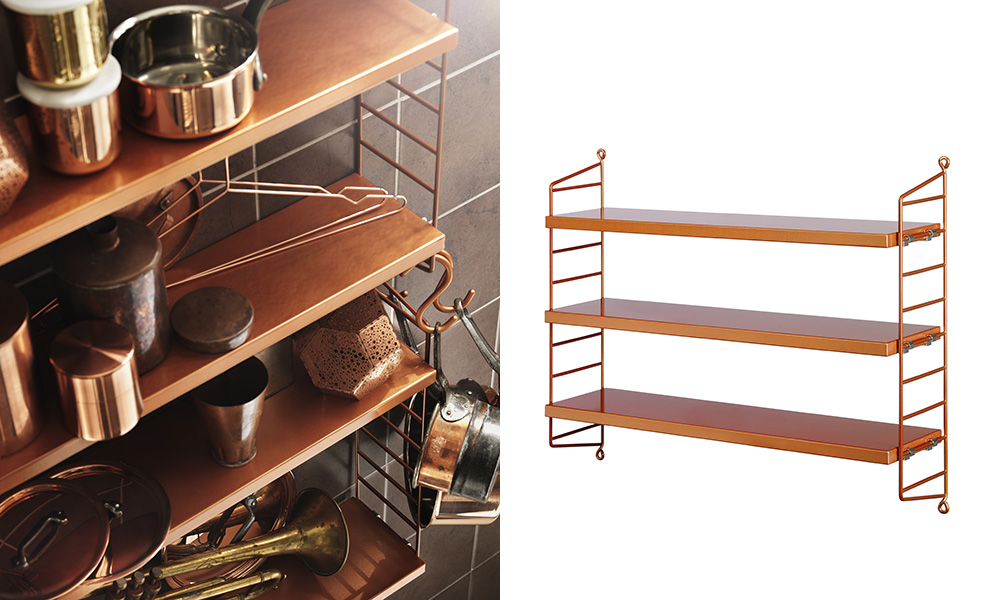 Das String Pocket Regal haben wir in 15 verschiedenen Ausführungen für Sie vorrätig: Hochwertige Furniere von Eiche, Esche, Walnuss, geräuchertem Eichenholz, geöltem Teak und schwarzgebeizter Esche. Weiterhin sind Ausführungen in lackiertem MDF in den Farben Blush, Burgundy, Grau, Mustard, Sand, Schwarz und Weiß erhältlich. Die Seitenleitern aus pulverbeschichtetem Stahl sind dazu passend in den Farben Weiß, Schwarz oder Grau verfügbar.