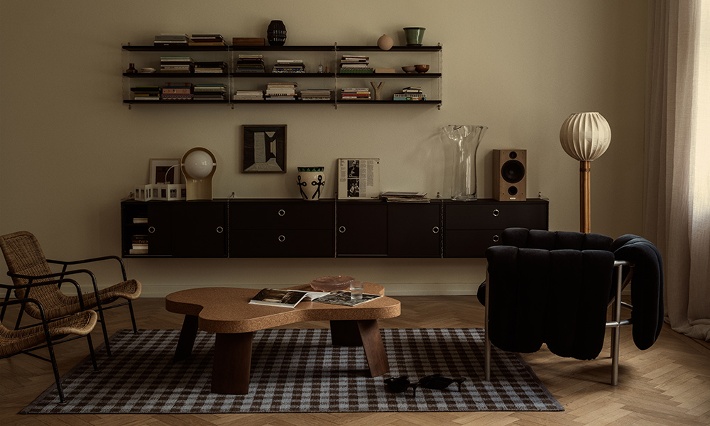 Das String Furniture Wandregal aus schwarz gebeizter Esche mit transparenten Wandleitern aus Plex verbindet Funktion und Wohnlichkeit auf besonders schöne Weise. Die dunklen Oberflächen geben dem Raum Tiefe, während die transparenten Wandleitern eine leichte, fast schwebende Wirkung erzeugen. Im Wohnzimmer entsteht so eine stilvolle Lösung für Bücher, Kunstobjekte und persönliche Dinge, die modern wirkt und gleichzeitig warm und einladend bleibt.
